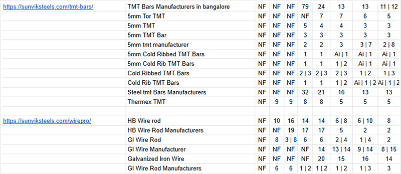 - Keyword Strategy: Focused on relevant keywords in the steel and TMT bar segment with local and national targeting.